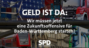 Im Bund wurde das größte Investitionspaket auf den Weg gebracht, das die Bundesrepublik je gesehen hat. Wie wir das Geld sinnvoll einsetzen könnten? Um das zu diskutieren, hat unser Fraktionsvorsitzender Andreas Stoch die Landesregierung und die Vorsitzenden aller demokratischen Landtagsfraktionen zum Gespräch eingeladen. Denn: Die anstehenden Herausforderungen sind so groß, dass wir sie nur gemeinsam lösen können. Was wir zum Gespräch mitbringen? Folgende Ideen:
