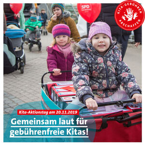 Neben der SPD als Initiatorin des Bündnisses hatten sich im Frühjahr zwölf weitere Organisationen aus Gewerkschaften, Sozialverbänden und Parteien in einem Bündnis auf Landesebene zusammengeschlossen, um sich neben dem Ausbau und der Qualitätsentwicklung für Gebührenfreiheit in der frühkindlichen Bildung stark zu machen. Es sind dies der DGB, verdi, die GEW, die IG Metall, pro Familia, der Kinderschutzbund, der Landesverband Kindertagespflege, die AWO, der ASB, die Naturfreunde, DIE LINKE und die SGK.